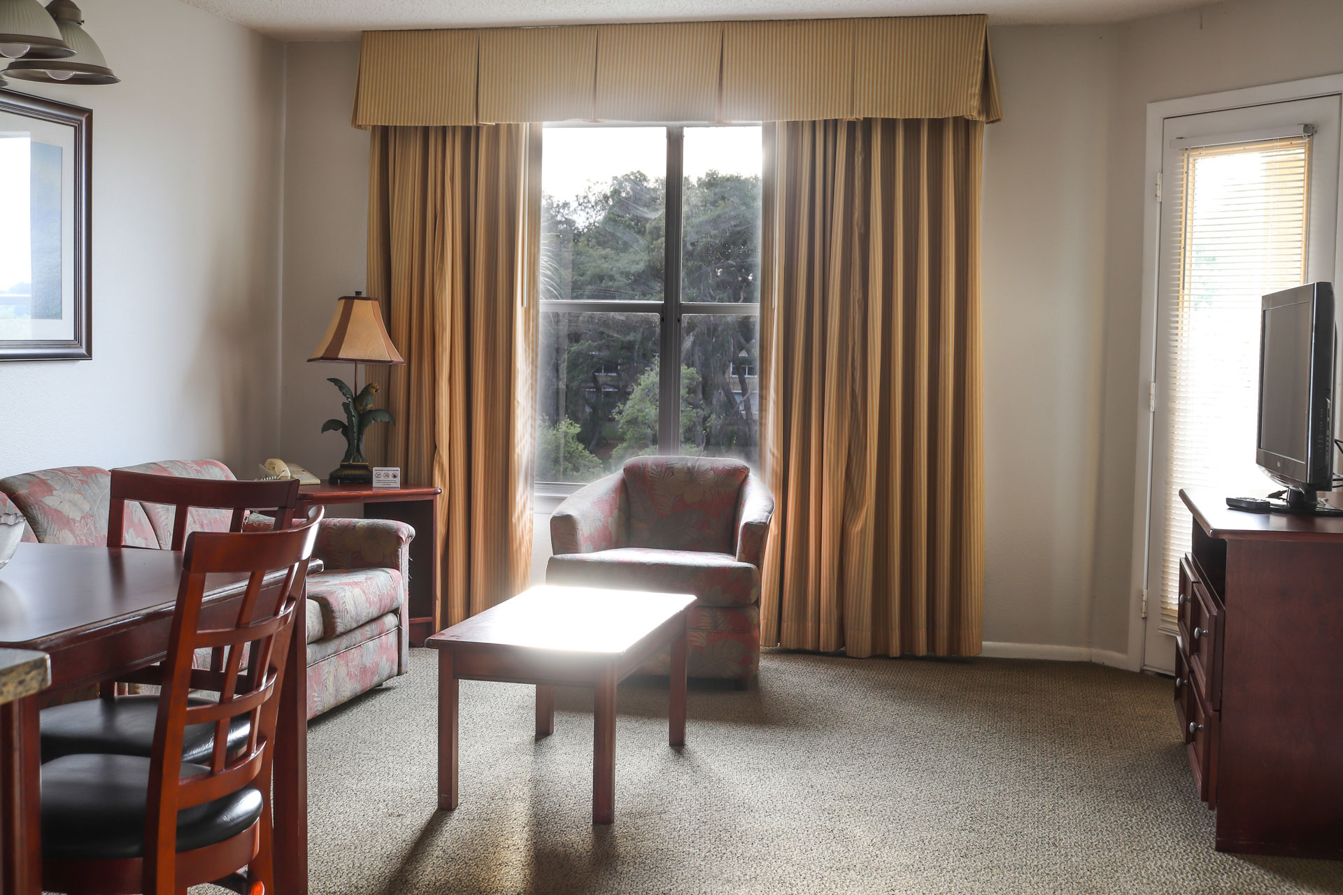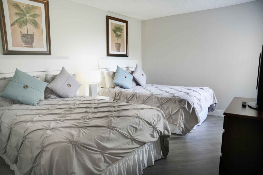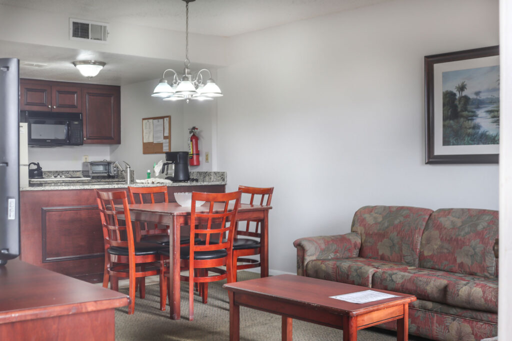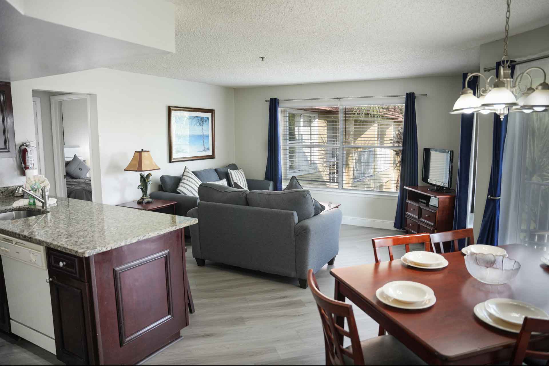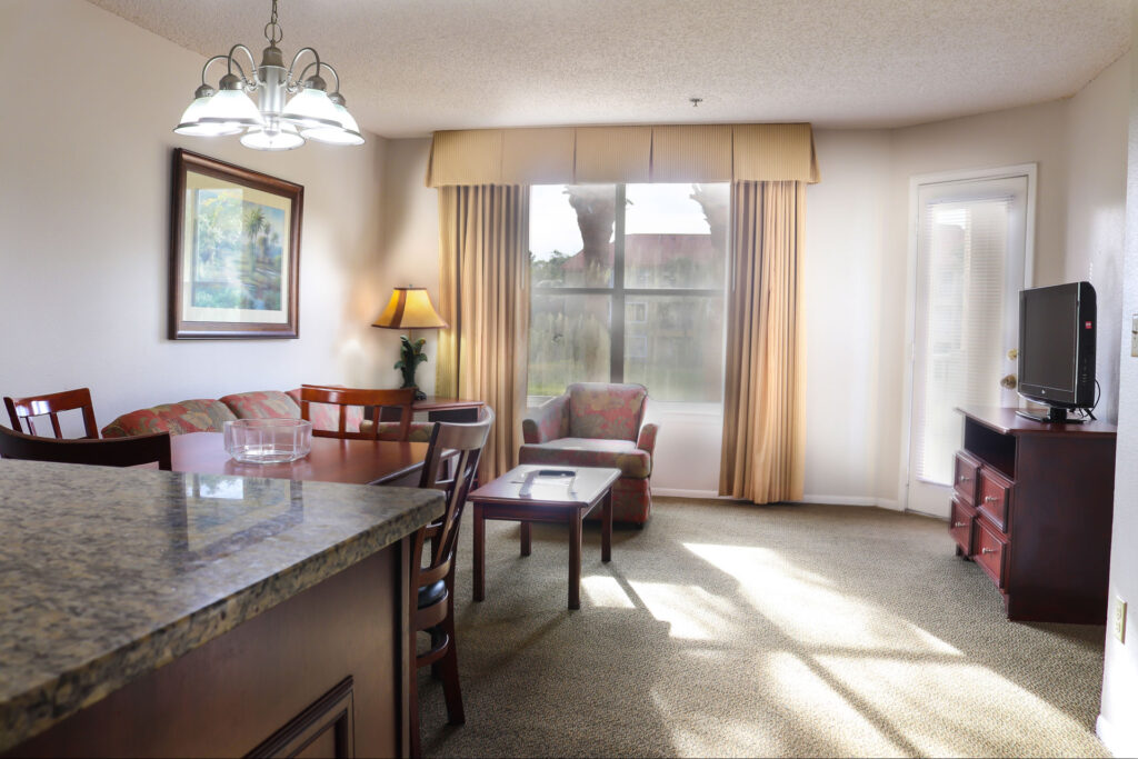 The open floor plan of this suite and the brightness from the big windows throughout the unit gives our guests a feeling of freedom and space that no hotel room can offer.